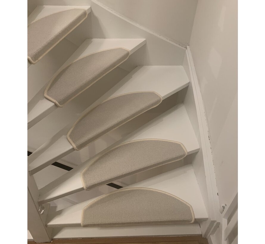 Eine sehr schöne und moderne Elfenbein Stufenmatte. Die Treppenmatte ist in einfarbig Elfenbein erhältlich. Durch die selbstklebende Eckleiste sind diese Stufenmatten sehr einfach auf der Treppe anzubringen.
